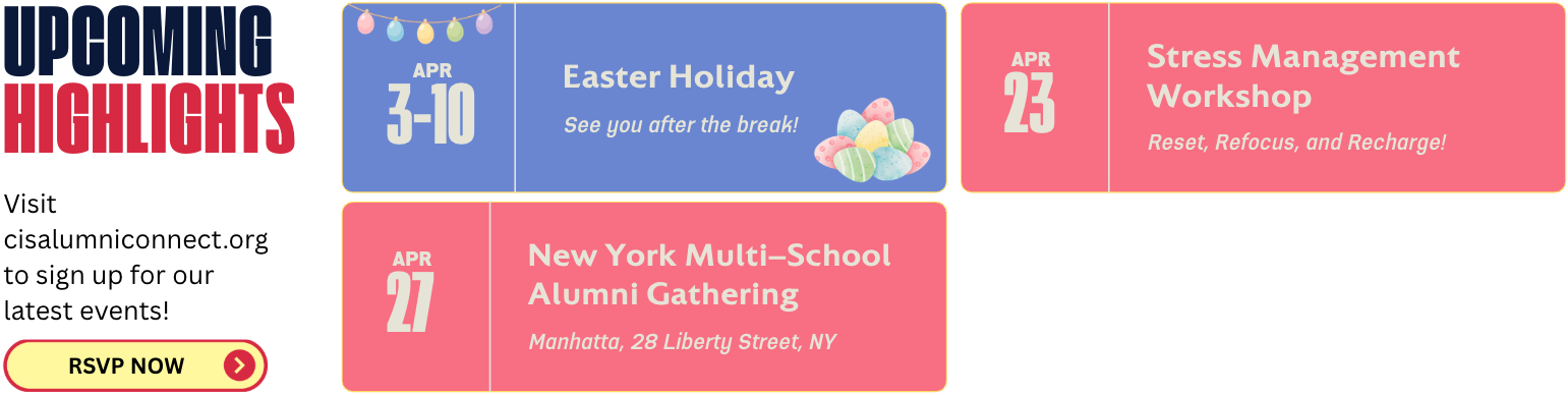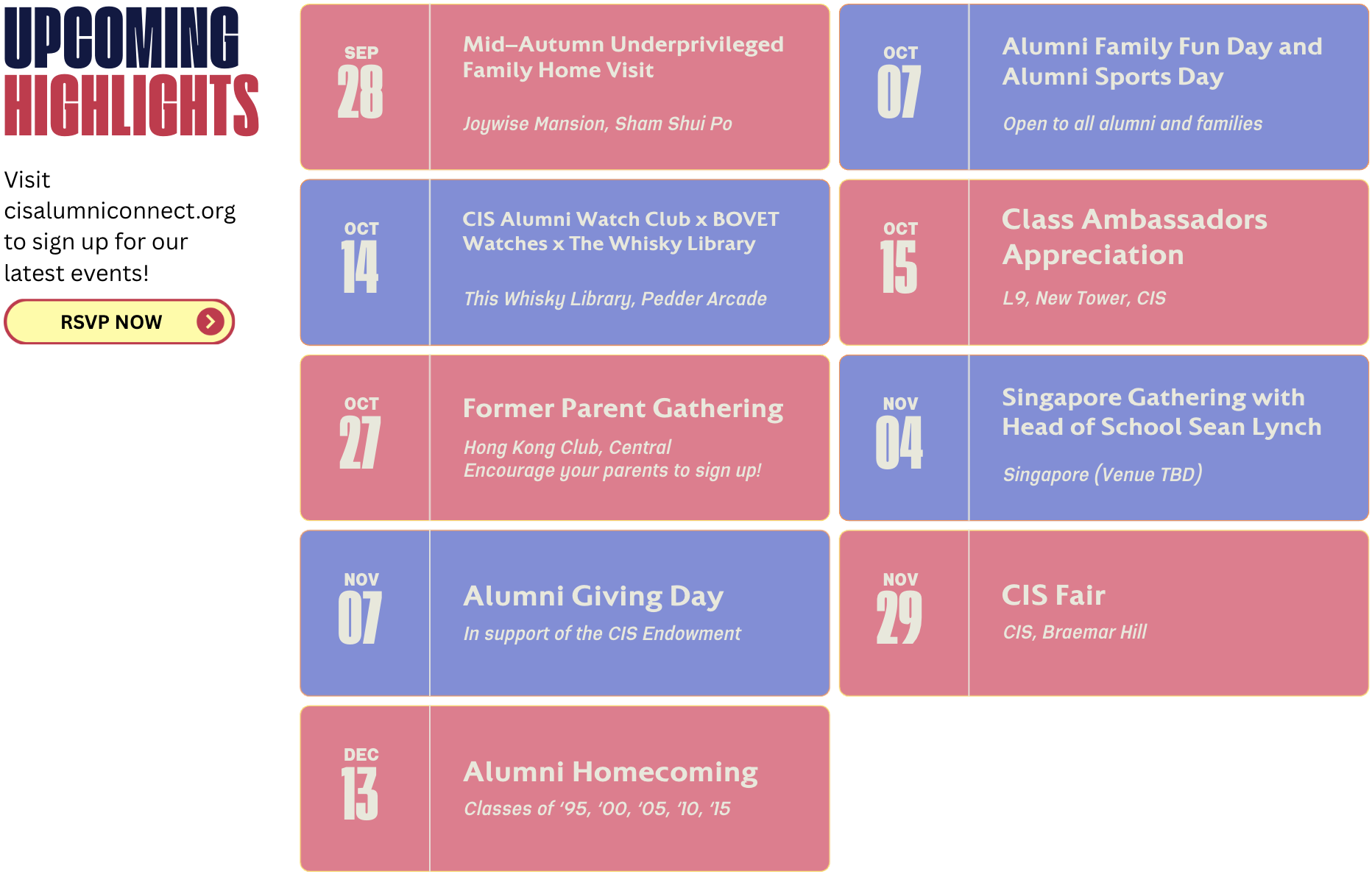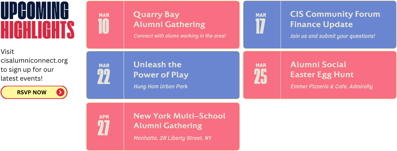 Relive the excitement of team sports, reconnect with old friends, and stay active while representing the CIS alumni community! Click here to join now!