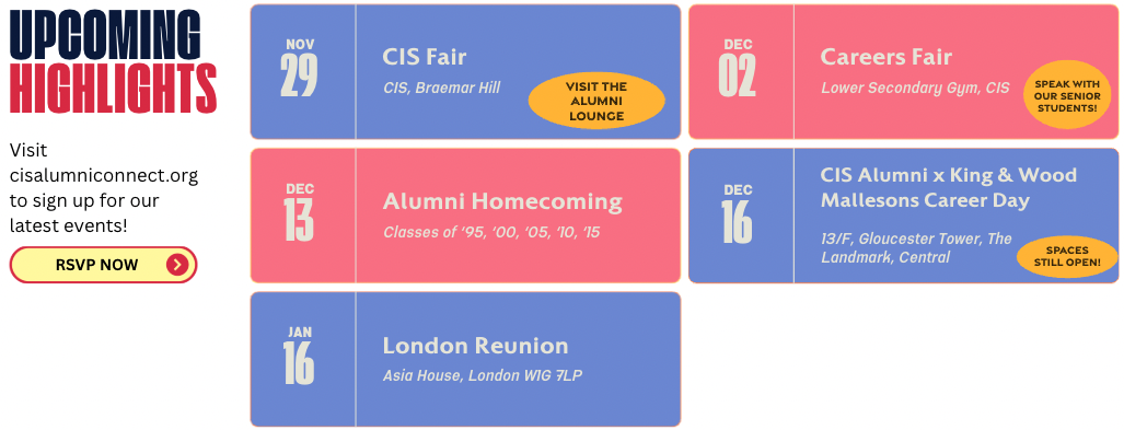 The CIS Alumni Community Fund is a fund available to all alumni to help kickstart alumni projects and interest groups. APPLY HERE!